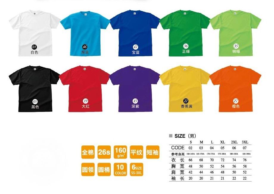 標(biāo)準(zhǔn)26織160克平紋全棉廣告衫,質(zhì)優(yōu)價廉。30件起訂,提供logo印花服務(wù),logo費用100元起,多于50件,每加多1件加2元,logo復(fù)雜,價格再議。